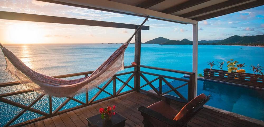 Unoasi di pace in armonia con la natura. Adagiato sopra una collina verdeggiante, circondato da chilometri di mare azzurro e tra due splendide spiagge di sabbia bianca. Un resort all inclusive di Antigua solo per adulti. Questo rustico ma romantico e accogliente boutique resort si trova sul lato del tramonto della bellissima isola caraibica di Antigua. Lhotel ? situato su di un promontorio che si affaccia su due meravigliose baie, a circa 30 minuti dallaeroporto. La struttura rispecchia esattamente il canone del piccolo resort caraibico. Lhotel ? consigliato a chi predilige unottima posizione panoramica anzich? la sistemazione alberghiera, ? inoltre indicato solo per coppie.